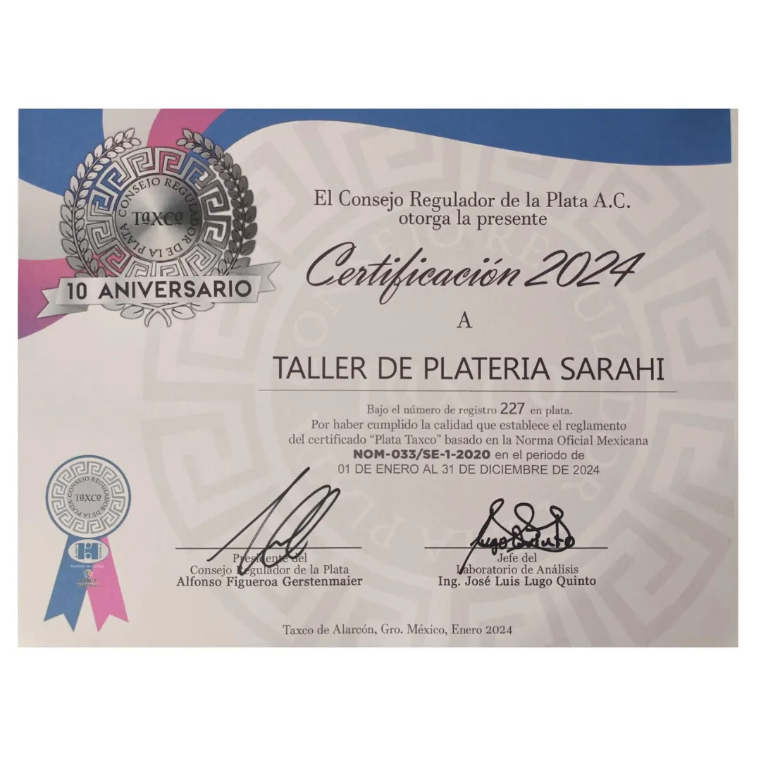 Elige Platería Sarahi por su calidad y confianza. Somos fabricantes certificados de joyería en plata, lo que nos permite garantizar la pureza y el acabado impecable de cada pieza.